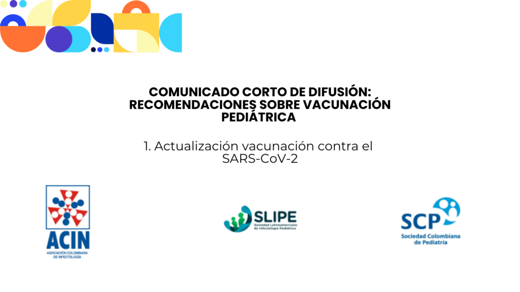 Comunicado corto de difusión: Recomendaciones sobre vacunación pediátrica 1. Actualización vacunación contra el SARS-CoV-2 La Sociedad Colombiana de Pediatría (SCP) representada en su comité de infectología y vacunas y la Asociación Colombiana de Infectología (ACIN) representada en su comité de vacunas y de infectología pediátrica han conformado un grupo de estudio y análisis de las […]